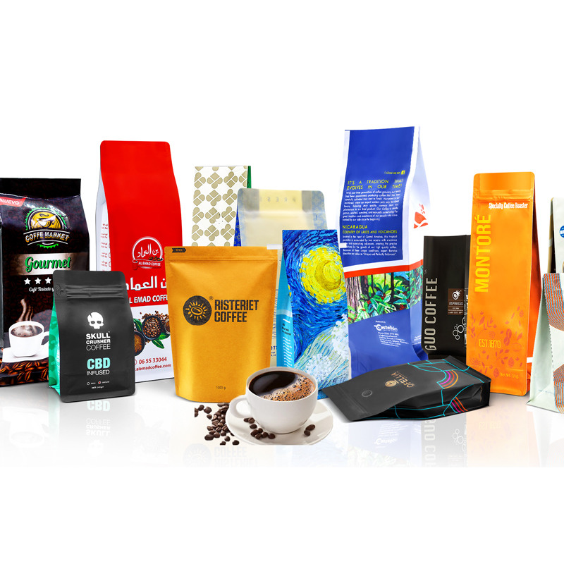 咖啡包裝種類繁多,有三邊封咖啡袋,平底咖啡鋁箔袋,自立咖啡鋁箔袋,側(cè)邊風(fēng)琴咖啡袋,八邊封咖啡袋等。不同種類的咖啡包裝其材質(zhì)也不盡相同,一般生豆出口包裝材質(zhì)比較簡單就是普通麻袋材質(zhì)。速溶咖啡包裝也沒有特別的材質(zhì)要求,基本上采用一般食品包裝材質(zhì)。而咖啡豆(粉)包裝由于防氧化等的要求一般會采用不透光的塑料復(fù)合材料,以及比較環(huán)保的牛皮紙復(fù)合材料。